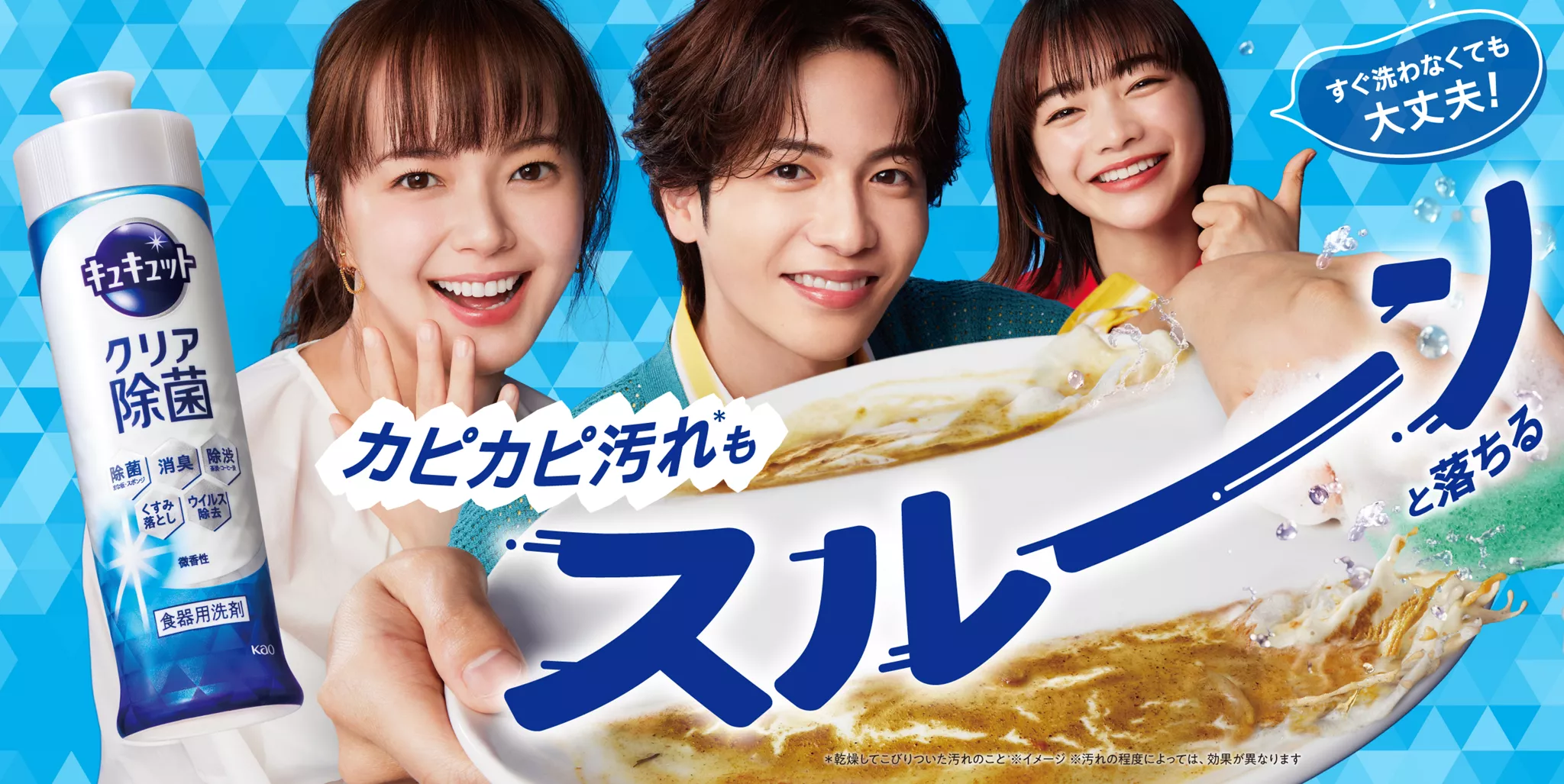 多部未華子,志尊淳,見上愛 出演 花王 キュキュット クリア除菌 CM