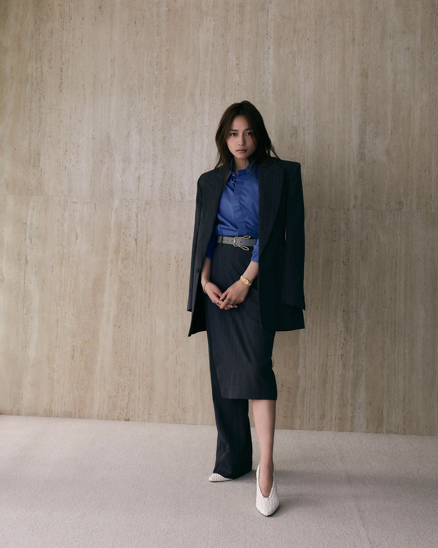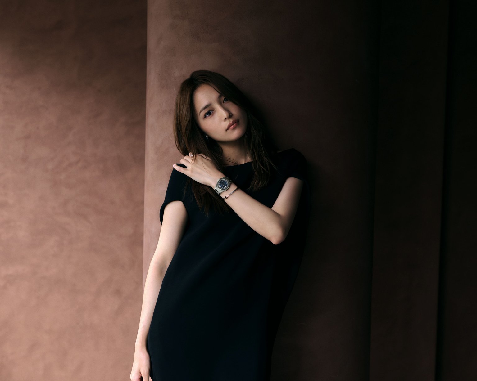 普段から時計の存在感に「負けないように」していると語るが、その凜とした佇まいからは確かな説得力を感じる。