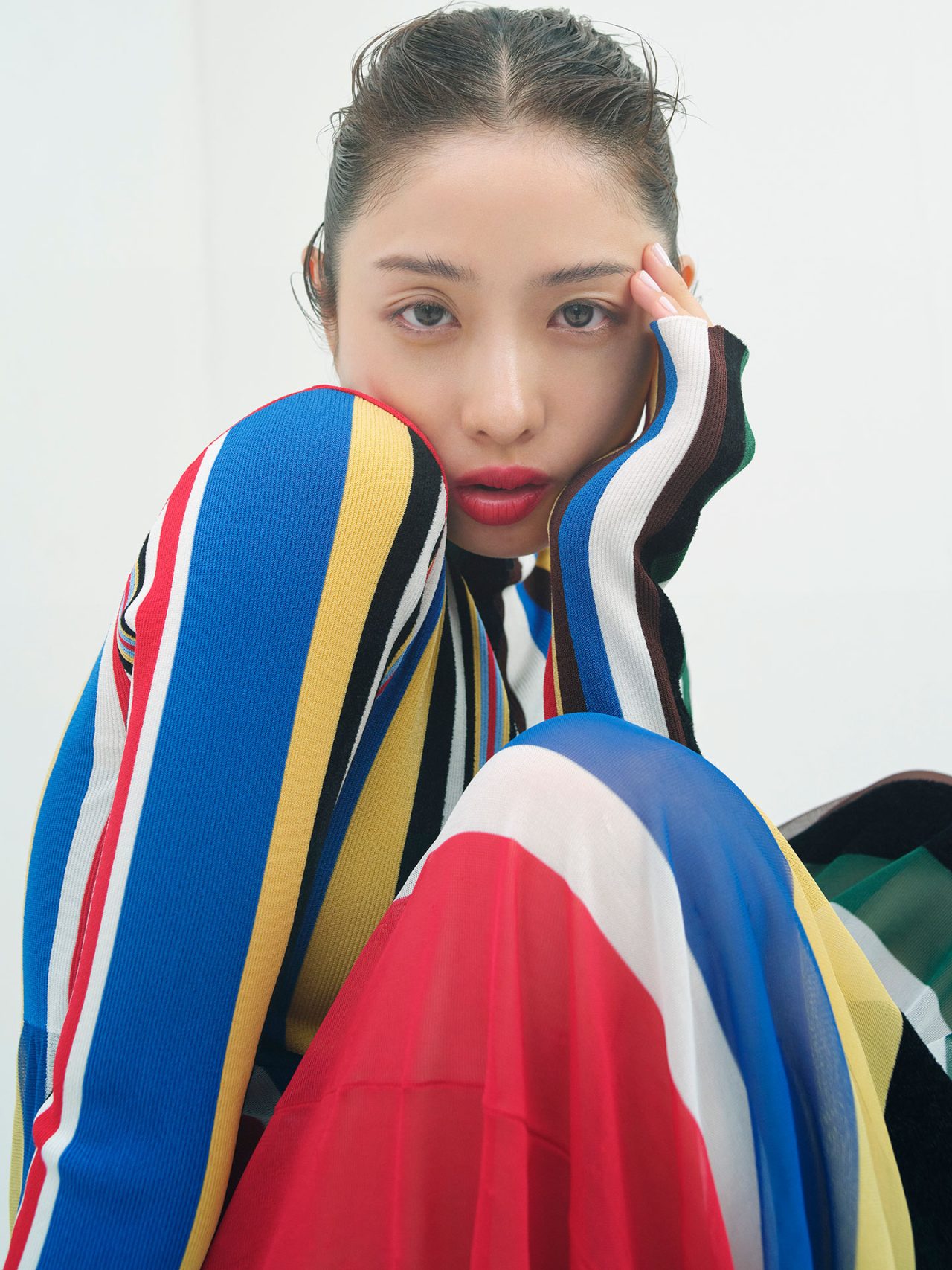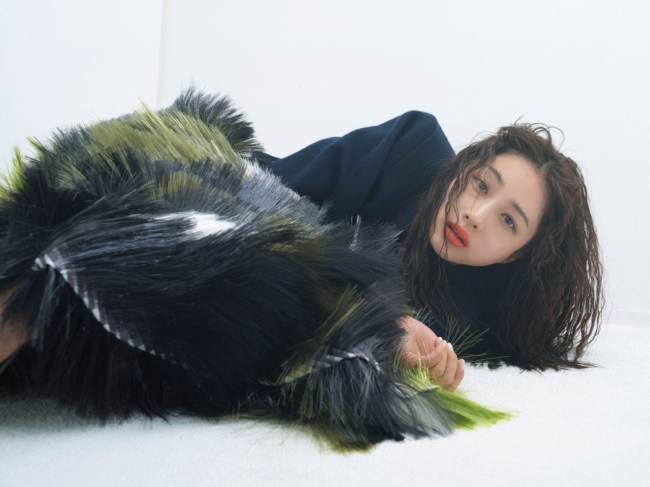 各メゾンから届いた独創的なピースを、圧倒的な表現力を持って着こなしたのは俳優の石原さとみ。